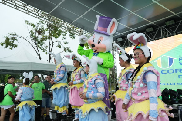Diferente dos adultos, que correram pelas ruas no entorno do parque, as crianças competiram em um percurso montado dentro da própria estrutura do Parque da Cidade. E levaram a disputa a sério, com direito a aquecimento ao lado da turma do Coelhinho da Páscoa, minutos antes da largada.